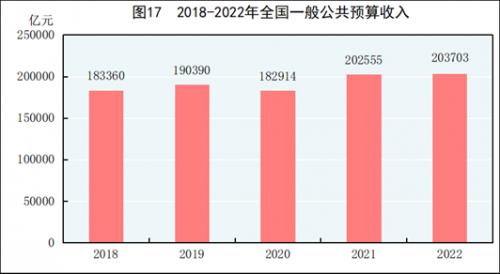全年全国一般公共预算收入203703亿元,比上年增长0.6%;其中税收收入166614亿元,下降3.5%。全国一般公共预算支出260609亿元,比上年增长6.1%。全年新增减税降费及退税缓税缓费超4.2万亿元,其中累计退到纳税人账户的增值税留抵退税款2.46万亿元,新增减税降费超1万亿元,办理缓税缓费超7500亿元。