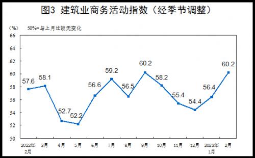 分行业看,建筑业商务活动指数为60.2%,比上月上升3.8个百分点。服务业商务活动指数为55.6%,比上月上升1.6个百分点。从行业情况看,道路运输、航空运输、邮政、住宿、租赁及商务服务等行业商务活动指数位于60.0%以上高位景气区间;批发、保险等行业商务活动指数低于临界点。