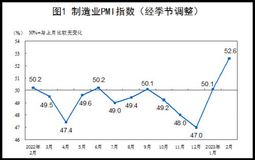 2月份,制造业采购经理指数(PMI)为52.6%,比上月上升2.5个百分点,高于临界点,制造业景气水平继续上升。
