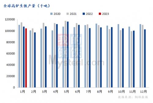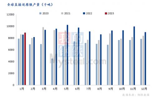 根据世界钢铁协会公布的最新统计数据显示,2023年月份全球高炉生铁总产量较2022年12月份相比小幅增加,全球直接还原铁产量较2022年12月份相比小幅减少。