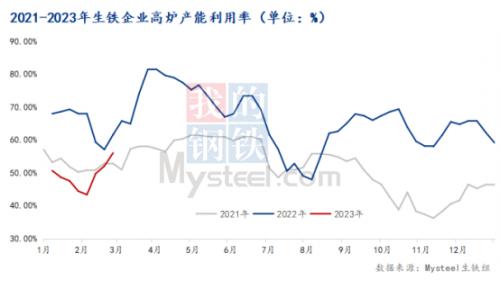 图-3生铁企业高炉产能利用率走势图