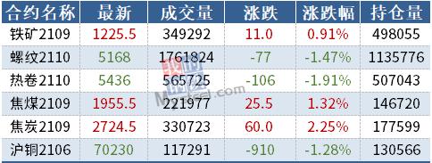 ◎螺纹钢跌1.47%、热卷跌1.91%