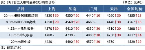 ◎3月7日,唐山迁安普方坯资源出厂含税上调30元,报3970元/吨。