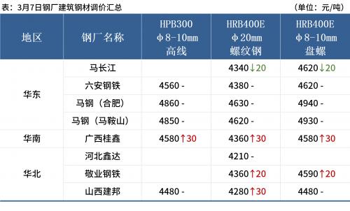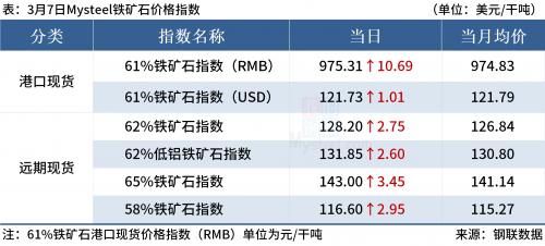 ◎3月7日,全国主港铁矿石成交66.80万吨,环比减23.4%;237家主流贸易商建材成交19.07万吨,环比增6.9%。
