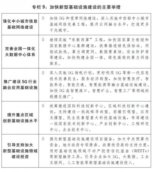 (计划报告中的专栏9:加快新型基础设施建设的主要举措)