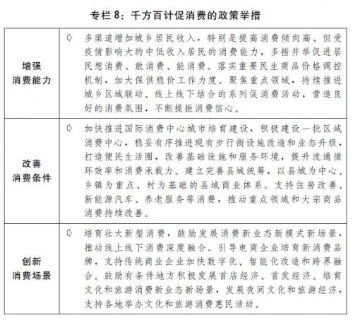 (计划报告中的专栏8:千方百计促消费的政策举措)