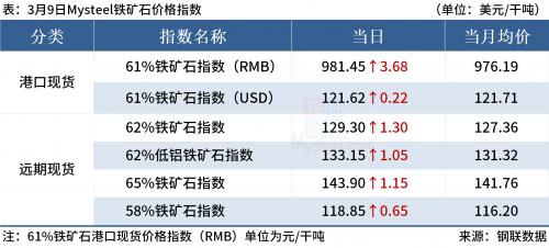 ◎3月9日,全国主港铁矿石成交111.40万吨,环比增12.5%;237家主流贸易商建材成交20.80万吨,环比增41%。