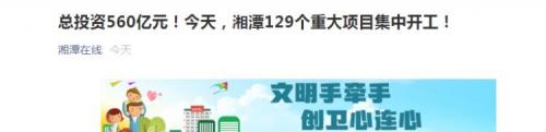 湘潭在线消息,6月21日上午,2021年湘潭市举办第二次重大项目集中开工活动,此次新开工投资5000万元以上的重大项目129个,总投资560亿元,年计划投资161亿元。其中投资10亿元以上的重大项目7个,总投资340.7亿元,年计划投资46.5亿元。其中,产业发展项目84个,总投资485.1亿元,年计划投资128.53亿元;基础设施项目24个,总投资34.77亿元,年计划投资19.91亿元;社会民生项目14个,总投资33.86亿元,年计划投资10.12亿元;生态环保项目7个,总投资6.27亿元,年计划投资2.38亿元。