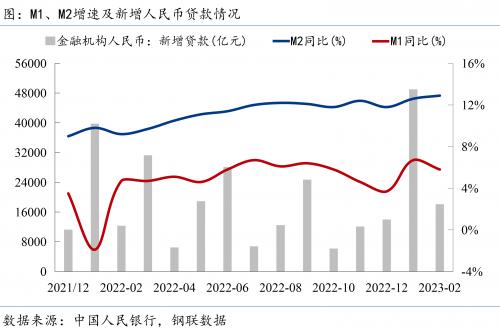 ◎ 3月10日,央行发布2023年2月金融统计数据和社会融资规模数据报告。数据显示,2023年M2同比增长12.9%,增速创下2016年3月以来新高;M1同比增长5.8%,较前一个月有所回落。当月人民币贷款增加1.81万亿元,同比多增5928亿元。2月末社融同比增长9.9%;社融增量比上年同期多1.95万亿元。