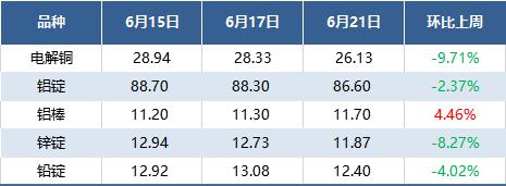 ◎:6月21日中国市场电解铜现货库存26.13万吨,较上周一降2.81万吨,较上周四降2.2万吨,市场去库趋势扩大;其上海市场13.35万吨,较上周一降1.6万吨,较上周四降1.23万吨;广东市场9.12万吨,较上周一降0.66万吨,较上周四降0.61万吨;江苏库存2.25万吨,较上周一降0.55万吨,较上周四降0.23万吨;市场担忧铜价反弹回升,因此在价格走低之时,拿货积极性明显回升,导致去库趋势扩大。