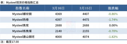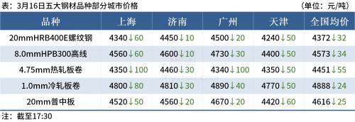 ◎3月16日午后,唐山迁安普方坯资源出厂含下调50元,报4000元/吨。秦皇岛卢龙普方坯出厂含税下调50元,执行4000元/吨。