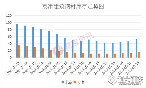 由上图可以清晰的看出,京津地区库存走势变化,自5月下旬以来,库存持续呈现增加的态势。近期钢厂方面到货量持续增加,而成交不畅,北京地区每日成交量多数不足万吨,甚至低于5000吨,大户库存量上升,主流大户库存量约在4-5万吨左右,现北京地区建筑钢材总体库存量接近60万吨,天津地区建筑钢材总体库存量16万吨左右,市场库存压力凸显,商家方面销售压力也有所增加,存低位套现操作。