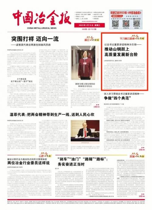 “高质量发展是全面建设社会主义现代化国家的首要任务”“人民幸福安康是推动高质量发展的最终目的”,习近平总书记在全国两会上的重要讲话,进一步明确了高质量发展的丰富内涵、深远意蕴,为山钢集团推进高质量发展指明了前进方向、提供了根本遵循。