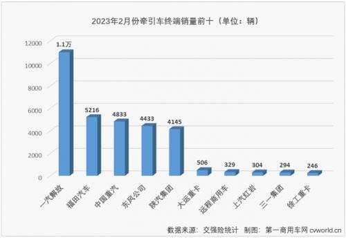 2023年2月份牵引车终端销量一览(单位:辆)
