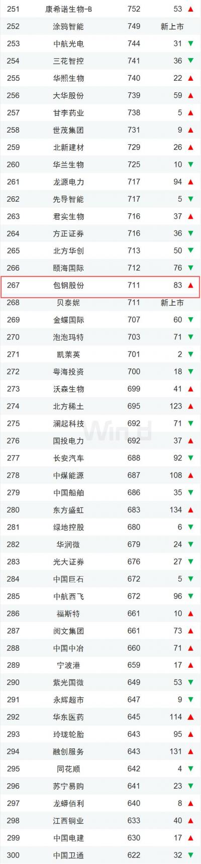 在2021年一季度“中国上市企业市值500强”榜单中,共有4家钢铁行业上市公司,包括宝钢股份、中信特钢、包钢股份、华菱钢铁。其中,宝钢股份以1799亿元市值位列中国上市企业第102位、上市钢铁企业第一位。