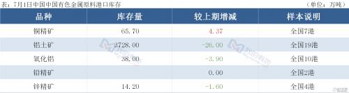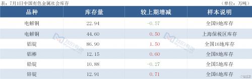 ◎:7月1日保税区铜现货库存持续增加,保税区电解铜现货库存44.6万吨,较上周四增0.7万吨,较本周一增0.5万吨,沪伦比值不佳,近期到港增加,另有国内出口,导致库存持续回升。