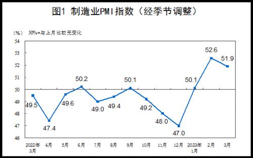 3月份,制造业采购经理指数(PMI)为51.9%,比上月下降0.7个百分点,高于临界点,制造业保持扩张态势。