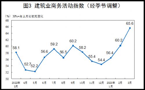 分行业看,建筑业商务活动指数为65.6%,比上月上升5.4个百分点。服务业商务活动指数为56.9%,比上月上升1.3个百分点。从行业看,零售、铁路运输、道路运输、航空运输、互联网软件及信息技术服务、货币金融服务、租赁及商务服务等行业商务活动指数位于60.0%以上高位景气区间;批发、水上运输等行业商务活动指数低于临界点。
