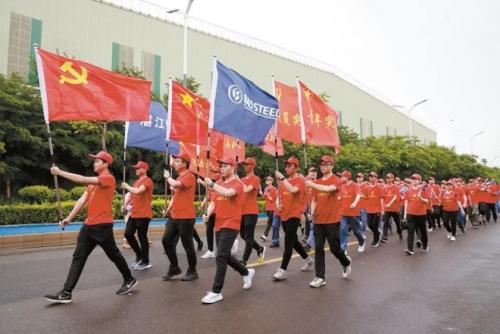 图为6月4日,宝钢湛江钢铁党委举行“永远跟党走”健步走活动。(湛江钢铁供图)
