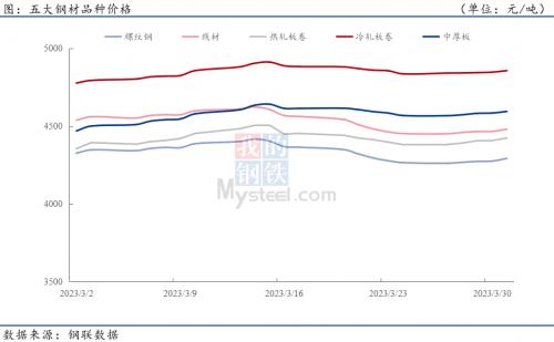 本周,全国主要市场五大品种钢材均价上涨。其中,热轧板卷、中厚板、冷轧板卷、高线、螺纹钢分别累计上涨27元/吨、28元/吨、42元/吨、21元/吨和26元/吨。