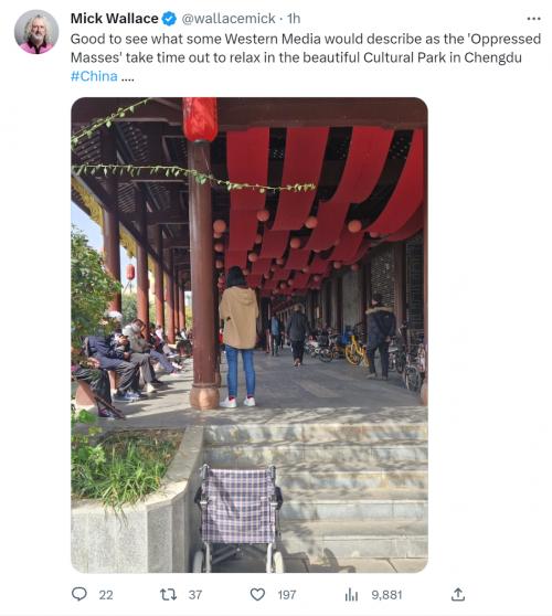 北京时间8日下午,来华交流的爱尔兰籍欧洲议会议员米克·华莱士在社交媒体上分享自己的来华体验,用他的所见所闻讽刺了一把西方媒体。