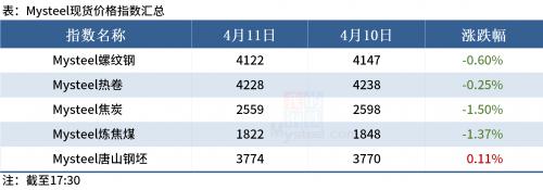 ◎4月11日,全国174家长、短流程代表钢厂废钢库存总量467.14万吨,较昨日降1.85万吨,降0.39%;库存周转天10.6天,较昨日降0.2天;日消耗总量42.72万吨,较昨日降0.24%;日到货总量40.87万吨,较昨日降1.28%。