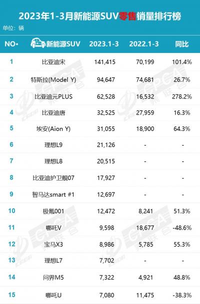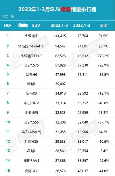 l3月份SUV销量72.8万辆,同比下降2.3%,环比增长12.0%;累计销量200.0万辆,同比下降13.6%。