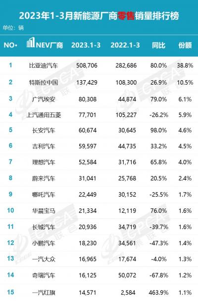l3月份新能源狭义乘用车销量54.3万辆,同比增长21.9%,环比增长23.6%;累计销量131.3万辆,同比增长22.4%。