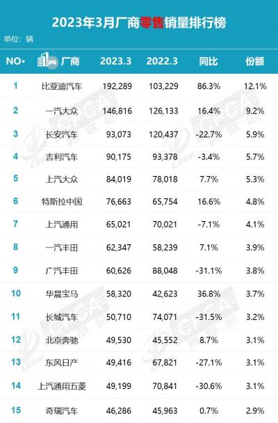 据中国汽车流通协会汽车市场研究分会(乘联会)最新零售销量数据统计,3月份国内狭义乘用车市场零售销量达158.7万辆,同比增长0.3%,环比增长14.3%;1-3月份累计销量426.2万辆,同比下降13.4%。