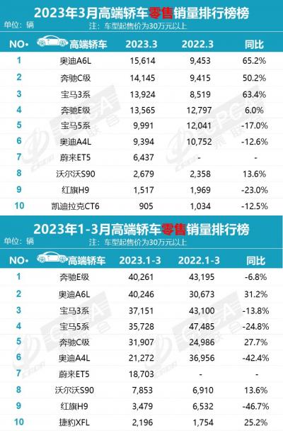 l3月份轿车销量75.9万辆,同比下降0.8%,环比增长15.7%;累计销量201.9万辆,同比下降14.8%。