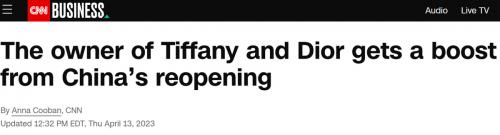 美国有线电视新闻网报道称,全球最大的奢侈品公司路威酩轩集团(LVMH)公布,第一季度销售额增长17%,是分析师预期的两倍多,主要原因是中国需求被释放。