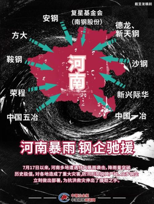 截至发稿前,驰援河南抗灾的钢铁相关企业如下: