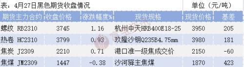 一、宏观消息1.成都钢铁网独家解读:油价周二下跌超过2%,因为挥之不去的经济忧虑和对进一步加息的预期可能抑制燃料需求增长,抵消了短期消费增长改善的迹象。由于担忧情绪升温,美国消费者信心在4月份降至九个月低点,加剧了今年经济陷入衰退的风险。关键的美国3月份制造业资本财的新订单下降幅度也超过预期,出货量也有所下降。2023年4月26日中国钢铁工业协会召开信息发布会,中钢协表示,下阶段要大力推进联合重组,提高产业集中度。要推动建立钢铁行业全国统一大市场,打破区域垄断,破除阻碍重组的体制机制障碍。2.【中央气象台:27日至29日北方地区多沙尘天气】受冷空气大风影响,27日新疆、青海柴达木盆地、内蒙古中西部、宁夏、甘肃西部、陕西中北部、山西北部、河北北部等地有扬沙或浮尘天气,28日,受另一股冷空气影响,内蒙古中西部、甘肃北部和中东部、宁夏、陕西、四川盆地北部、山西、河北中北部、北京、天津等地有扬沙或浮尘天气,其中,内蒙古中西部、甘肃河西、新疆南疆盆地局地有沙尘暴天气。29日受沙尘传输,华北南部、黄淮、江淮等地有扬沙或浮尘天气。二、产业行情最新消息1.废钢: