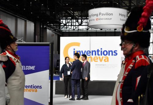 4月26日,在瑞士日内瓦,人们在第48届日内瓦国际发明展上参观。新华社记者连漪摄