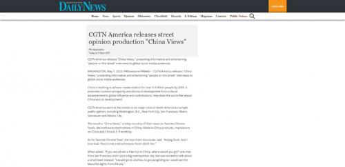 △美国北卡罗莱纳州主流媒体《华盛顿每日新闻》转载《全球“街”力(China Views)》节目报道