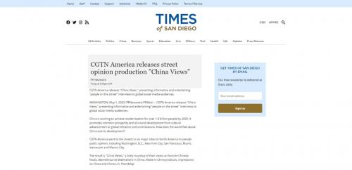 △美国加州《圣迭戈时报》转载《全球“街”力(China Views)》节目报道