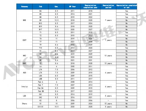 面板厂TV面板生产线折旧年限