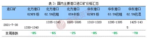 国产矿:周初山东安徽海南等大矿价格有大幅下调,唐山起初较为坚挺,但随着鑫达大降加之普指得到200美金以下,市场开始恐慌。山西市场仍未复产,钢企加大外矿用量或转向外地采购,使得本地有价无市。预计短期国产矿市场震荡偏弱运行。安徽、山东、邯邢局等大矿7.31日出厂价格预计跌66元左右。