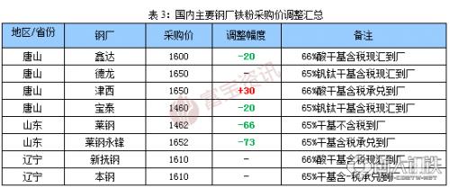 本周国内主导钢厂内粉采购价格稳中偏弱。唐山地区,受阴雨影响,市场表现较为冷清,周初货源还算吃紧,津西采购价在1650,经安在1690。但随着外矿的趋弱,鑫达大幅打压至1600,加之普指跌至200美金以下,市场正式进入下跌渠道。辽宁地区,月底辽东钢企采购,市场还算坚挺,但也难掩下跌的步伐,大概率钢企会下调采购。山东地区,市场整体欠佳,大矿大概率会下调价格,预计下调70左右。当地资源略显紧张,市场纷纷看涨,预计周末大矿调涨。山西地区虽有复产座谈会开展但是没有实质上的进展,当前主流资源价格坚挺。预计下周内粉价格将整体走弱。