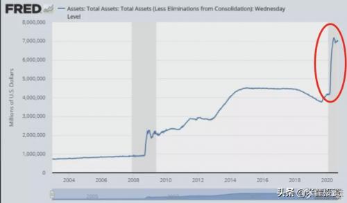 下面这张美联储资产负债表,2020年从4万亿美元直接拉升到目前的超8万亿,是不是觉得很高呢?