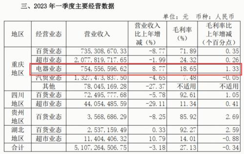 重庆百货年报则显示,2022年重庆地区电器业态店效,即店铺效益(店铺月平均销售)同比下滑10.23%。2022年重庆地区关闭2家电器业态门店,四川地区关闭1家电器业态门店。