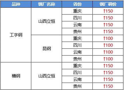 表2:本周西南区域钢厂调价情况(单位:元/吨)