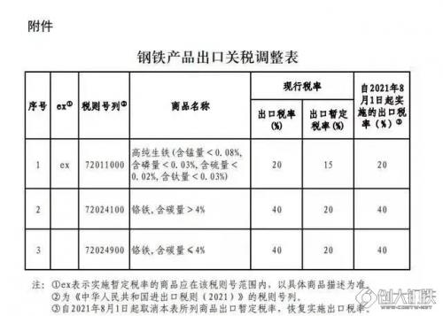 自2021年8月1日开始,中国取消了剩余23个税号钢铁产品的出口退税,实行了所有钢铁产品出口退税工作的清零。