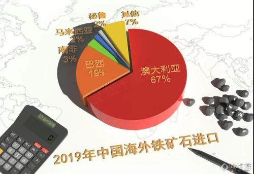 2019年,全球铁矿石需求量16.52亿吨,中国买下了10.69亿吨,占全球需求量的64.9%,而中国进口额的67%,来自于澳大利亚。