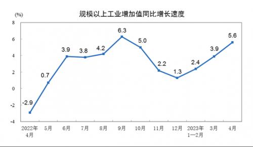 4月份,规模以上工业增加值同比实际增长5.6%(增加值增速均为扣除价格因素的实际增长率)。从环比看,4月份,规模以上工业增加值比上月下降0.47%。1—4月份,规模以上工业增加值同比增长3.6%。