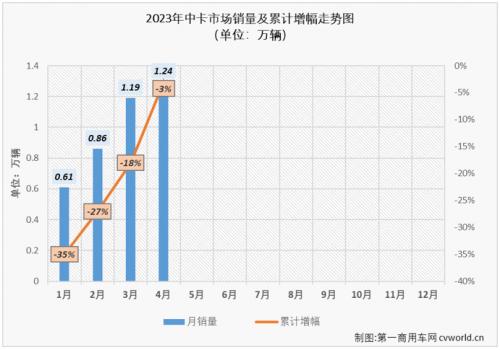 作为卡车市场里存在感较弱的中卡市场,在2023年前3个月还未尝胜绩;4月份,中卡市场表现又是如何呢?请看第一商用车网的分析报道。