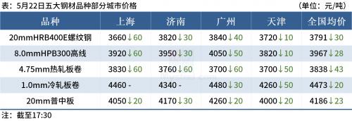 ◎5月22日,唐山迁安、秦皇岛卢龙等地普方坯出厂含税下调40,执行3360元/吨。