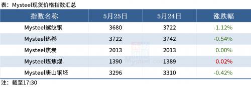 ◎5月25日,江苏沙钢废钢采购价格下调50元/吨,重三含税2750元/吨,炉一含税2830元/吨,月累计涨跌幅为-120元/吨,年累计涨跌幅为-370元/吨。详情>>