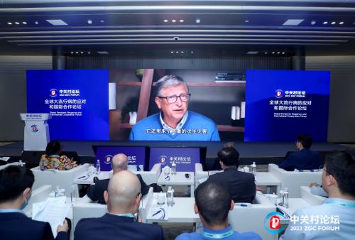 比尔·盖茨26日在2023中关村论坛期间发表视频演讲。中关村论坛组委会供图。
