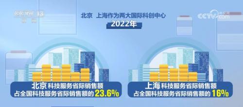 从创新来看,2017年—2022年,全国科技服务省际销售额年均增长28%,较科技服务总体销售收入增速快4.2个百分点。今年截至5月20日,科技服务省际销售额同比增长29.7%,较科技服务总体销售收入增速快2.6个百分点。北京、上海作为两大国际科创中心,2022年科技服务省际销售额分别占全国科技服务省际销售额的23.6%和16%;2017年—2022年年均分别增长22.1%和24.2%。